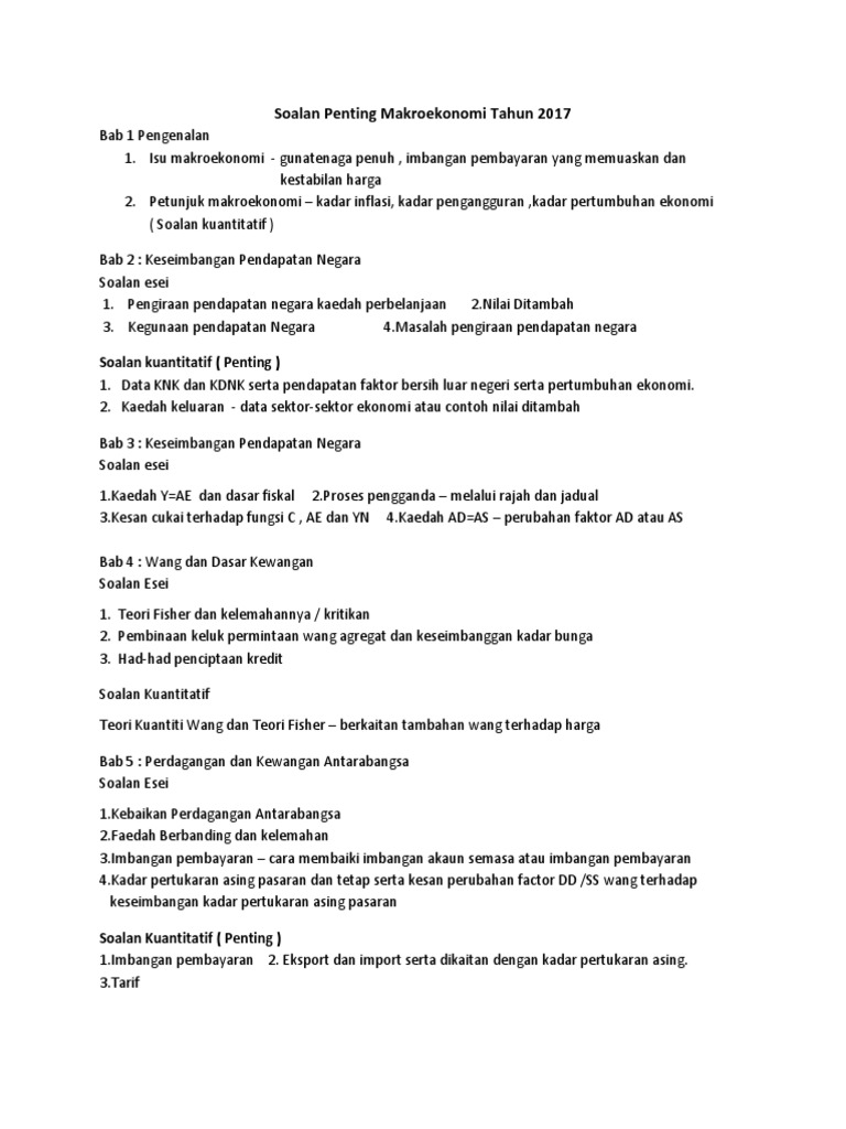 Soalan Penting Makroekonomi Tahun 2017 Pdf